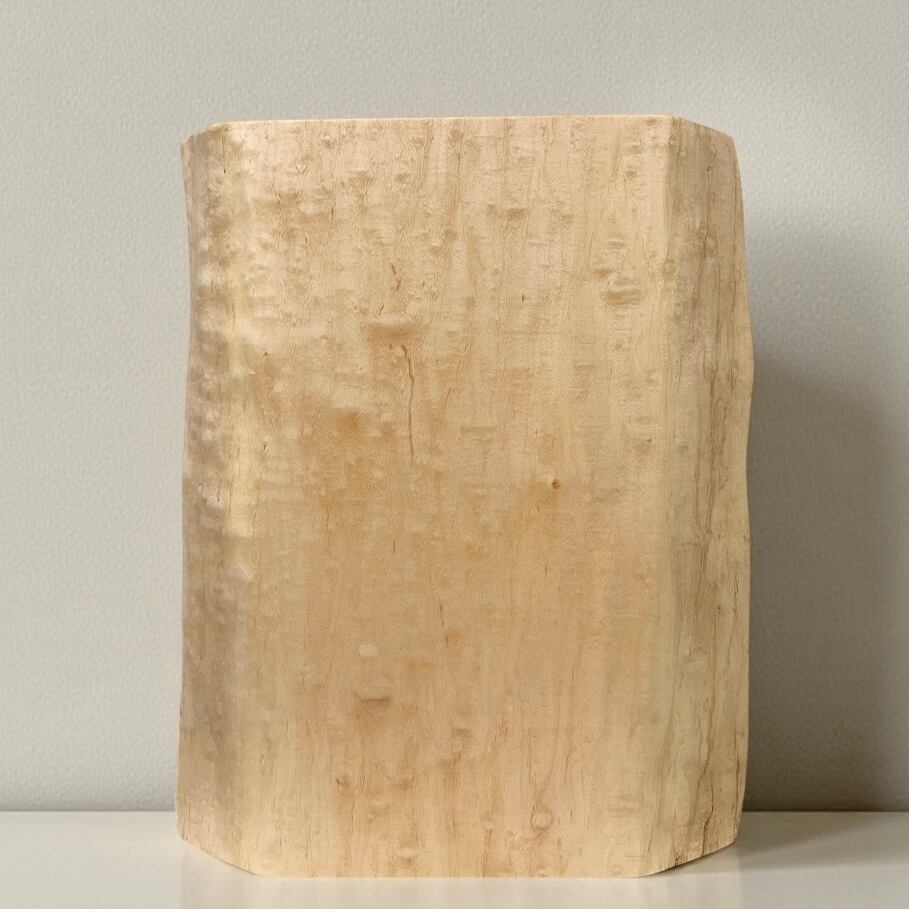 「杢」と呼ばれる木目と異なり見る角度にもよって木の表情の変わる美しい楓「カエデ」の木です。重厚感があります。